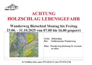 News Sperrung Wanderweg ins Bietschtal während der Woche Der Wanderweg ins Bietschtal wird vom 23. Juni bis Weiterlesen » 16. Juni 2025