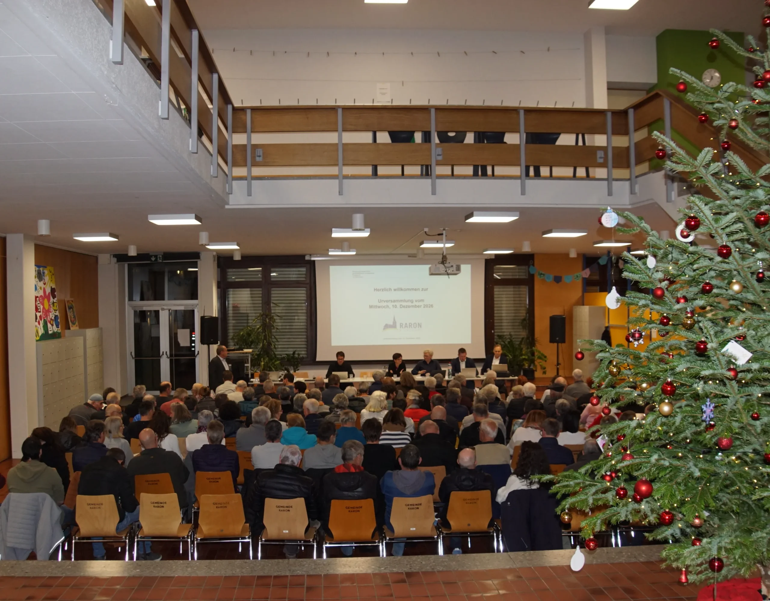 Die 125 Teilnehmenden der Urversammlung von Raron haben am Mittwochabend das Budget 2026 einstimmig angenommen. Das Budget 2026 sieht bei der Erfolgsrechnung bei Erträgen von 10.305 Mio. Franken und Aufwänden von 7.71 Mio. Franken einen kleinen Etragsüberschuss von rund 5’000 Franken und eine Selbstfinanzierungsmarge (Cashflow) von 2.595 Mio. Franken vor. Die Bruttoinvestitionen der Einwohnergemeinde Raron belaufen sich im Jahre 2026 auf 10.753 Mio. Franken. Nach Abzug der Investitionsbeiträge Dritter ergeben sich Nettoinvestitionen von 9.037 Mio. Franken, welche bis auf einen kalkulatorischen Finanzierungsfehlbetrag von 6.442 Mio. Franken mit dem Cashflow finanziert werden.