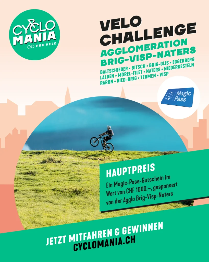 Mit der Durchführung der Cyclomania Challenge setzt die Agglomeration Brig-Visp-Naters ein Zeichen und motiviert die Bevölkerung vom 1. bis 30. September auf den Drahtesel umzusatteln.