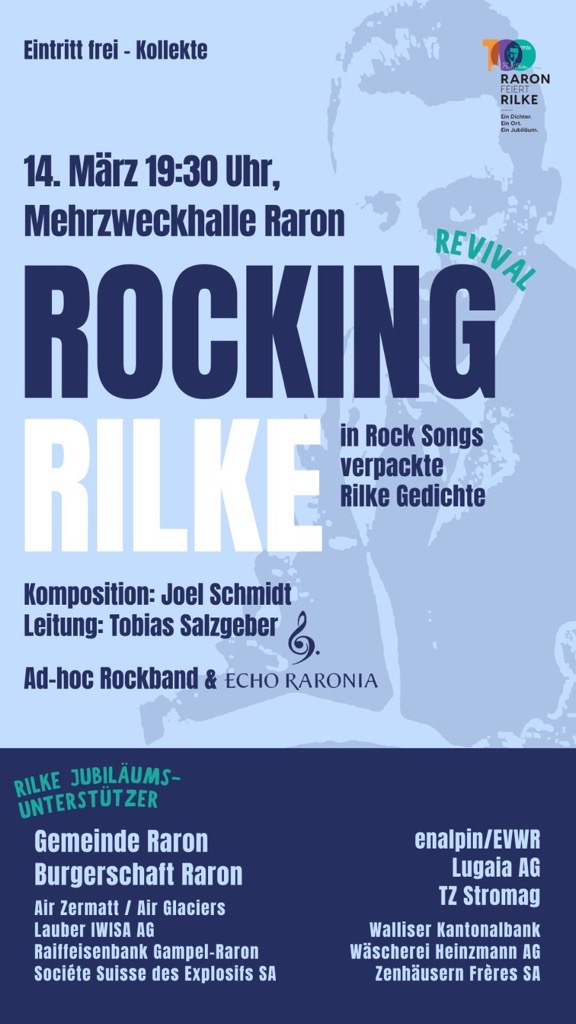 Anlässlich von ‘Raron feiert Rilke‘ wird am 14. März 2026 ein Konzert stattfinden.